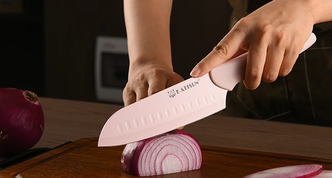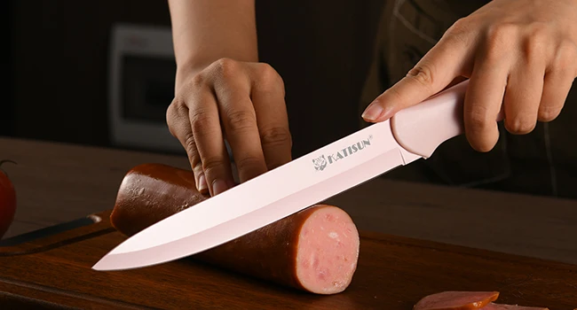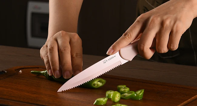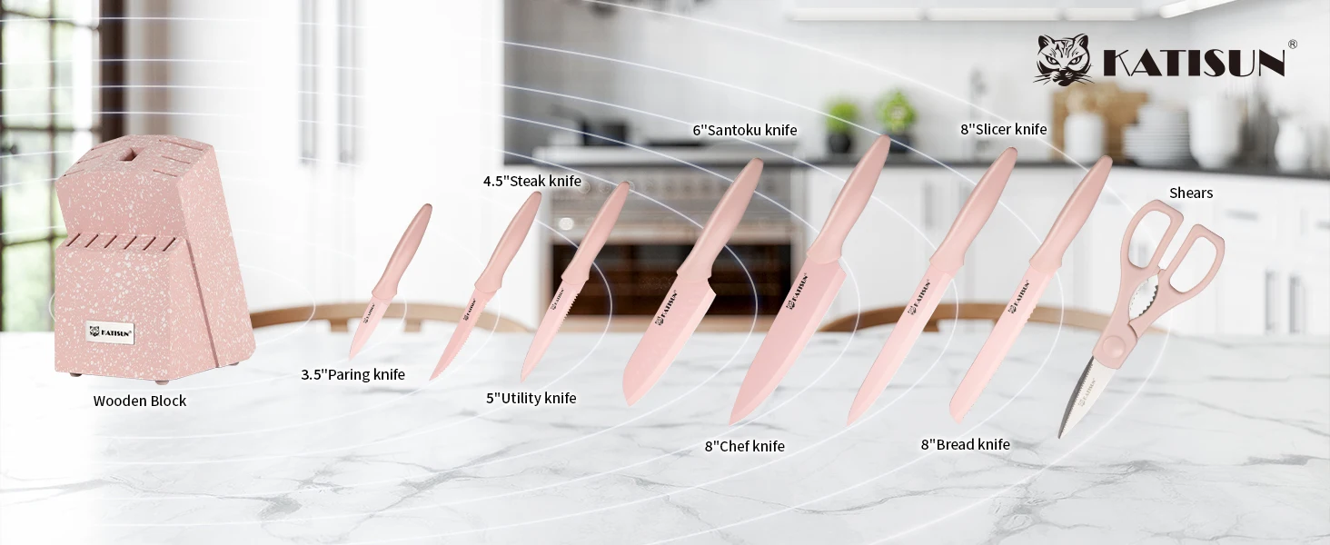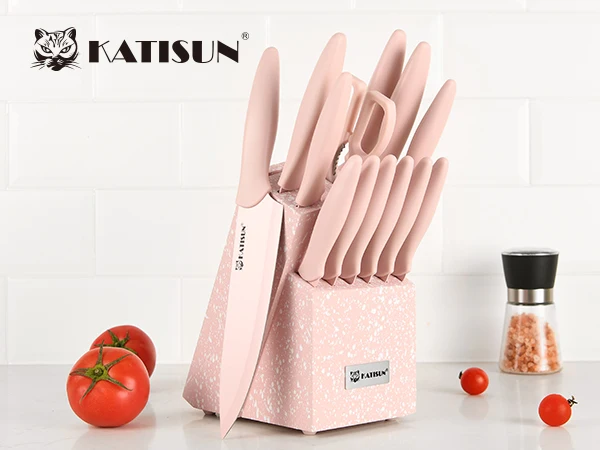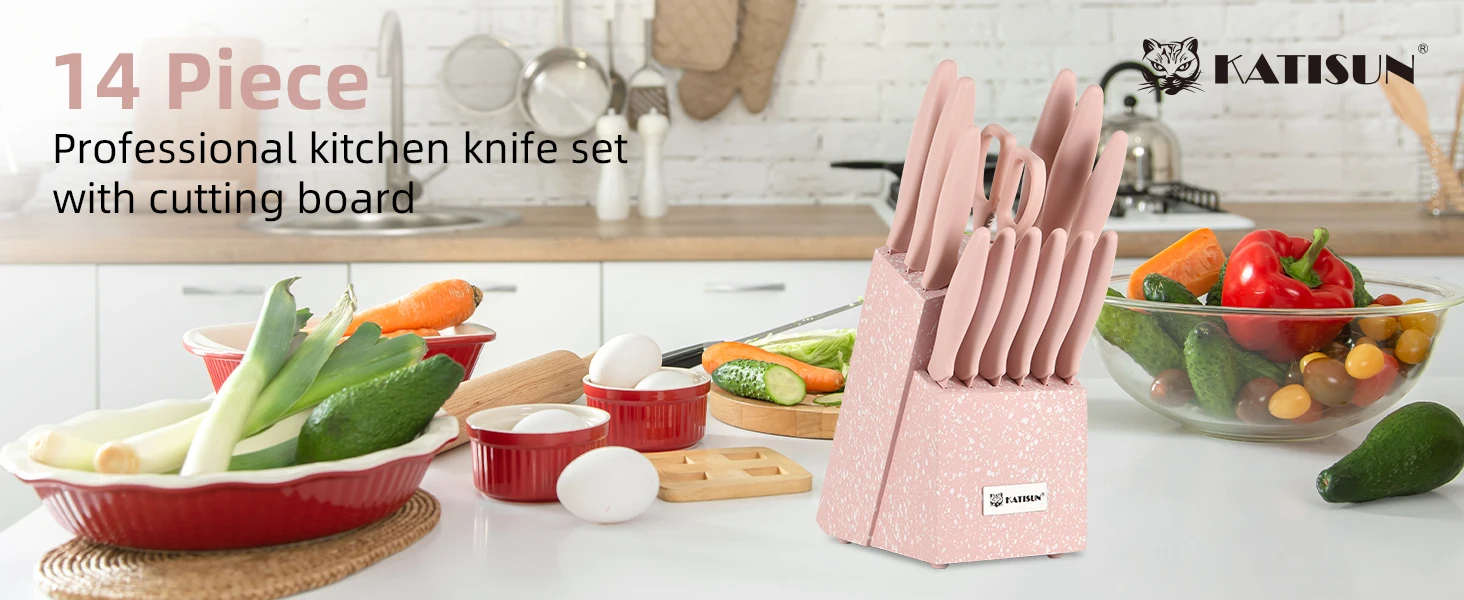 14 Pieces Pink Kitchen Knife Color Block Set , Anti-Rust Color Titanium Coated