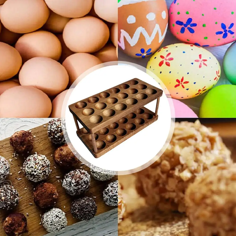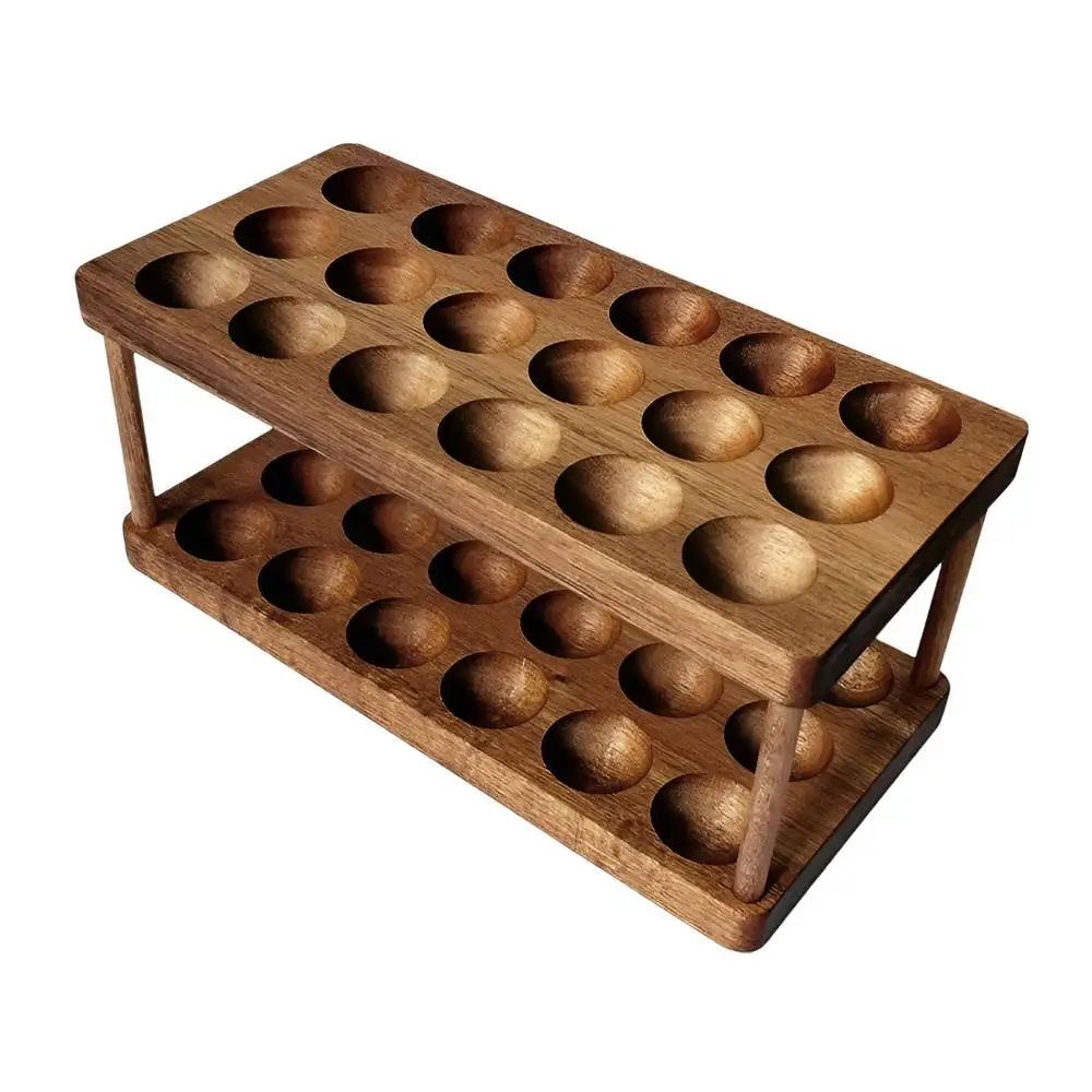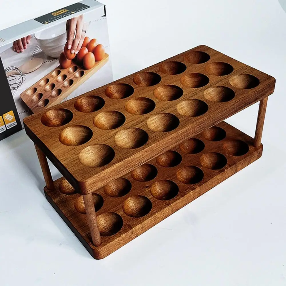 2 Tiers Wooden Egg Holder Countertop Stackable Wooden Egg Storage Holder 2 Laye