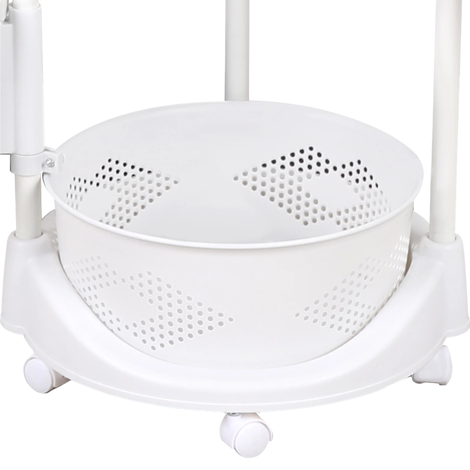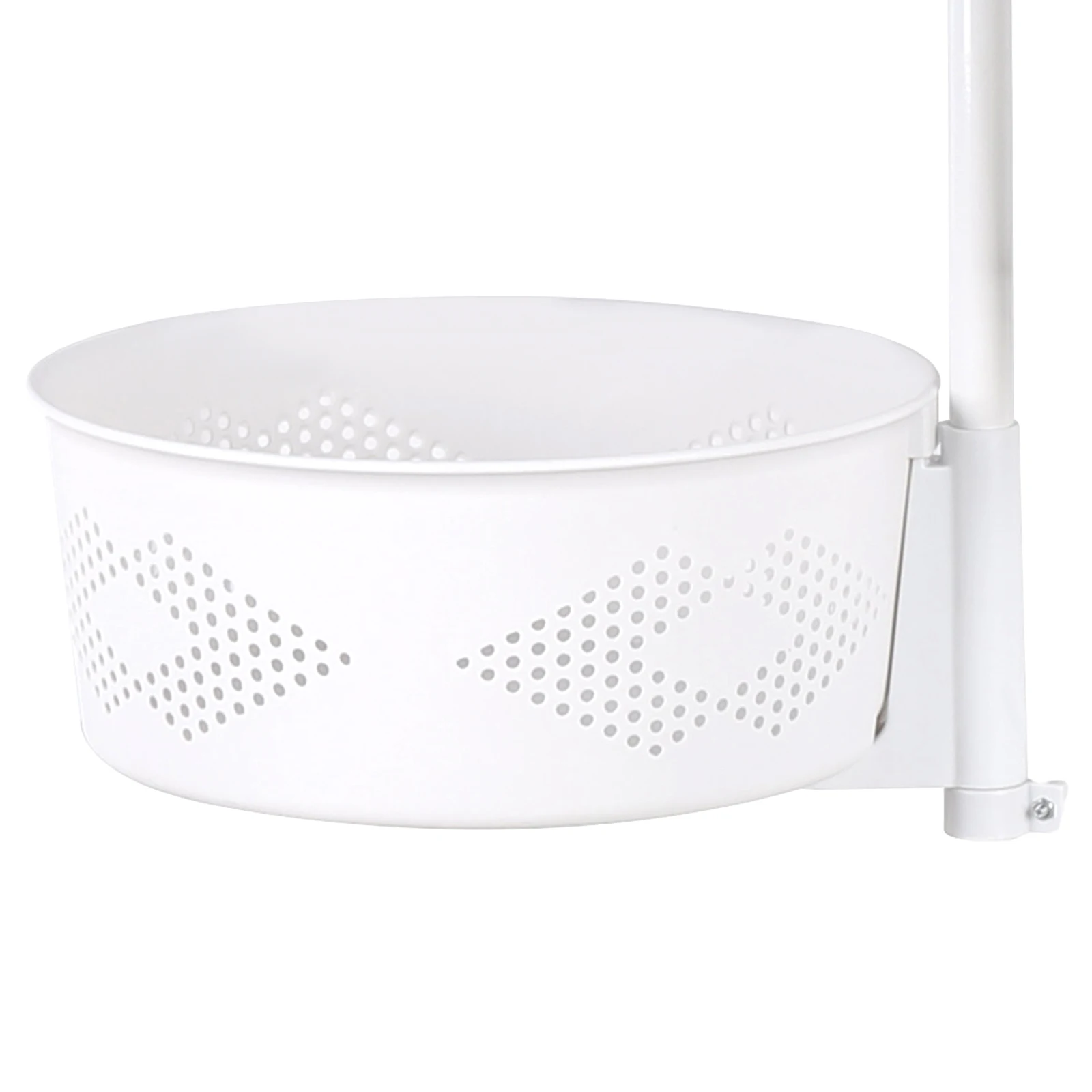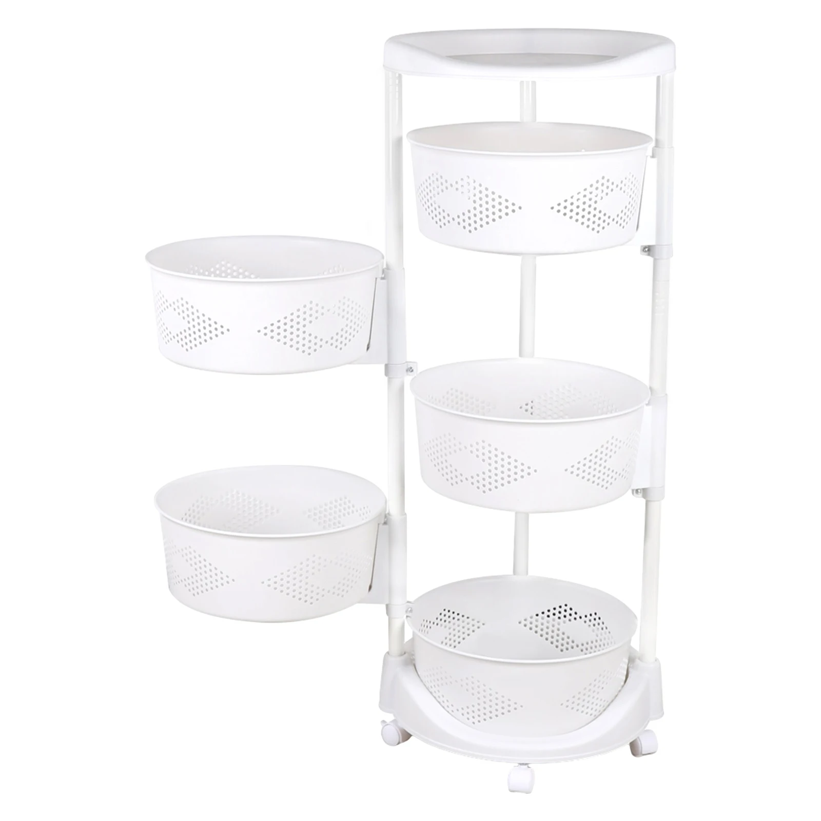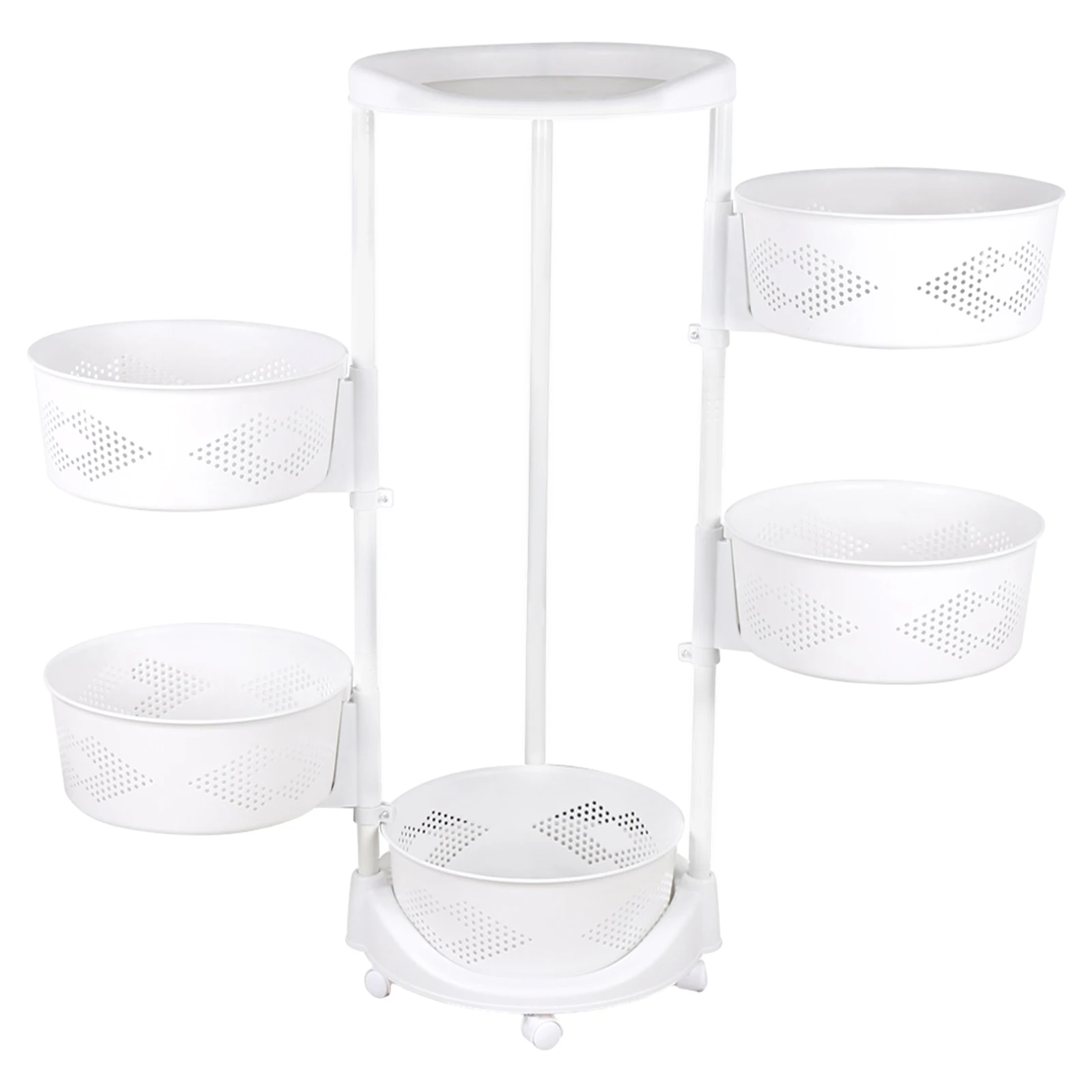 5-Layer White Wheeled Storage Basket, Vegetable Rotating Basket Rack, Kitchen Storage Rack