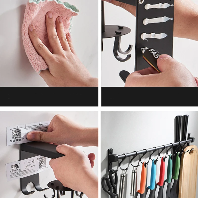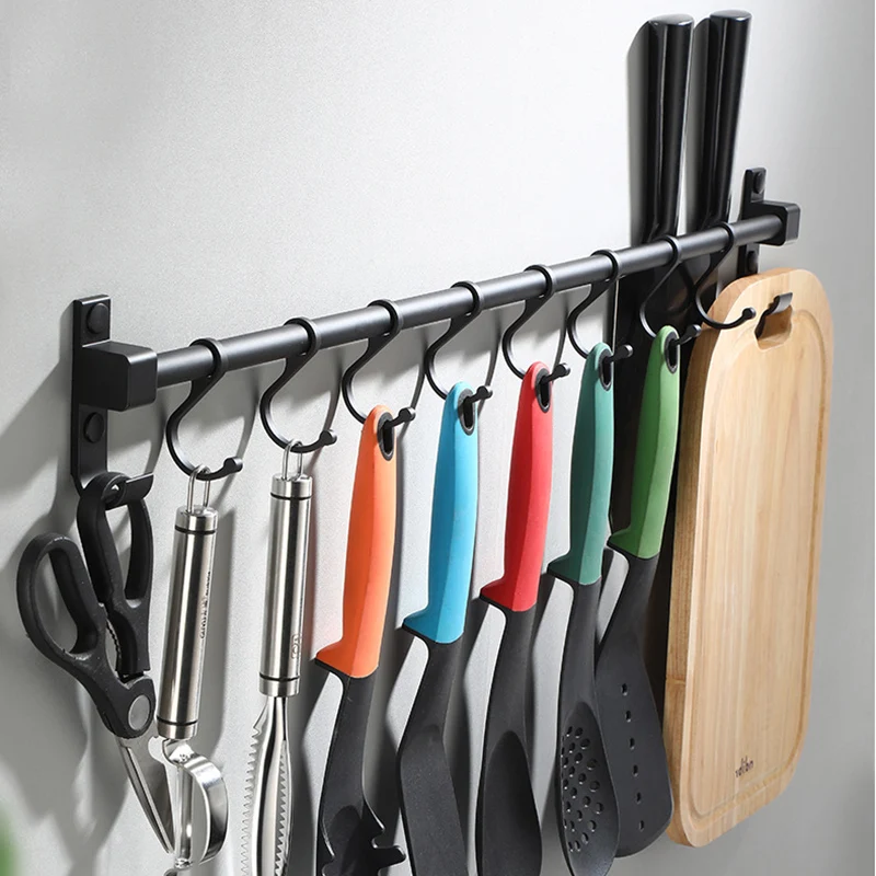 1PC Hardware Organizer Modern Kitchen Hanger Punched Wall Mounted Utensil Aluminum Pan Rack Storage Holder Bar Pot Cabinet Shelf